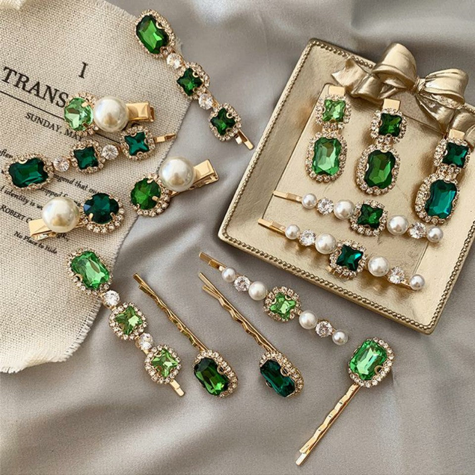 Rhinestone Luxury Emerald Clip Card